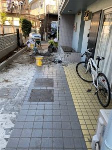 タイルを撤去し、コンクリート舗装で耐久性アップ