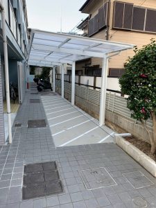 施工事例:今回の工事では、アパートの駐輪場に カーポートを新設 し、より使いやすくメンテナンスのしやすい環境を整えました。