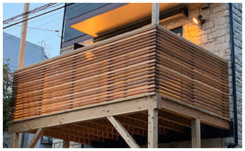 ウッドデッキの新設・増設・改築では、室内とのつながりやお庭への動線を工夫し、使いやすさと過ごしやすさを重視した設計を行います。安全面やプライバシーにも配慮し、建物の雰囲気や周囲の景観に調和するデザインで、お客様のライフスタイルにぴったりのウッドデッキを一緒に作り上げていきます。